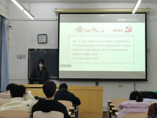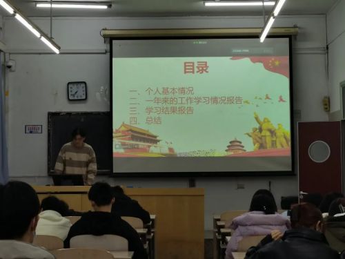 首先,支部书记曹龙就本次预备党员述学答辩做了详细介绍和阐述,随后每位预备党员对自己的个人情况、预备期思想政治学习、专业学习情况以及自身的缺点与不足等进行报告。