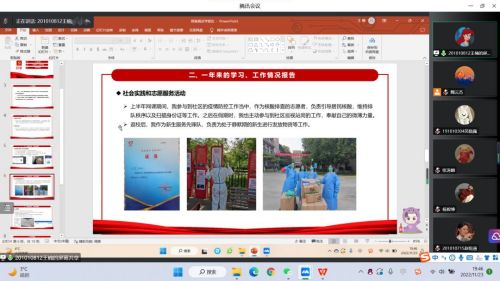 支部内即将转正的4位预备党员分别就个人基本情况,一年以来的学习、工作、志愿服务等情况展开了报告。