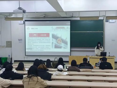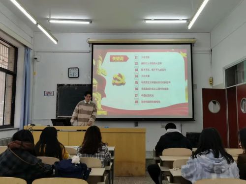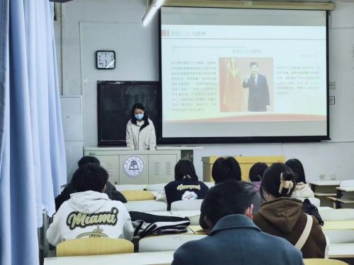 首先由冯嘉仪同志介绍了二十大的的主题和意义,中国共产党第二十次全国代表大会是在全党全国各族人民迈上全面建设社会主义现代化国家新征程、向第二个百年奋斗目标进军的关键时刻召开的一次十分重要的大会。是一次高举旗帜、凝聚力量、团结奋进的大会,在党和国家发展进程中具有极其重大的历史意义。