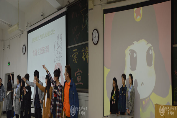 宣讲会以主题话剧《雷锋》开场,用生动而富有感染力的表演为同学们重现了雷锋生活的点滴。话剧由同学们自己构思创作,用