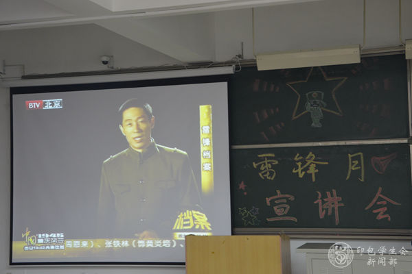 同学们还一同观看了纪录片《雷锋档案》。片中,主持人通过展示照片和播放视频剪影的形式,多角度评述了雷锋及雷锋的生平事迹,大家观看得非常认真,思想上受到很大震撼。观影结束后,同学们纷纷上台在横幅上签名,写下自己的名字,也是许下自己的一份承诺。
