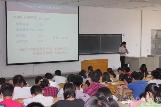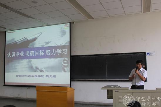 近日,印刷与包装工程学院院长魏先福教授于E楼二阶会议室对12级印包学院各班级进行了新生入学专业教育。魏先福院长通过PPT的演说形式,向印刷与包装工程学院的新生们介绍了印包学院各专业的总体概况和就业前景以及印包学院的师资力量。