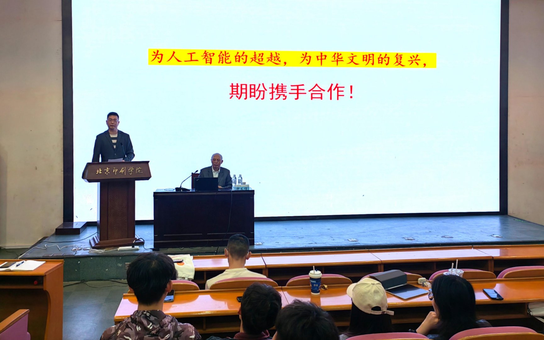 在互动交流环节,钟义信解答了同学们在人工智能方面的困惑,鼓励同学们积极学习探索,勇于创新实践,为人工智能的超越式发展贡献自己的智慧力量。