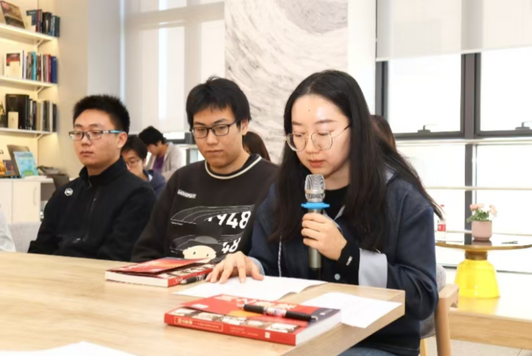 最后,曹瑀濛进行发言。她结合阅读体会,对学生们提出三点希望。一是坚定理想信念,脚踏实地,将脊梁精神发扬在每一件小事中。二是立足专业,积极投身科研创新。三是践行“功成不必在我,功成必定有我”的担当精神,将个人理想融入国家需求,树立科创报国志向。