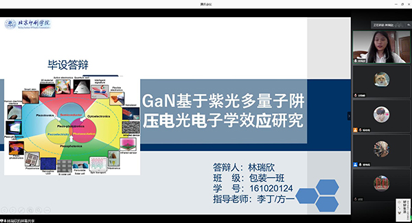 特别的疫情,特殊的答辩。6月17日,印包学院2020届本科毕业设计(论文)答辩采用“云答辩”(线上答辩)的方式如期举行。本次答辩,根据印刷、包装、高分子材料等三个专业以及专业方向的不同,分成了15个答辩小组,每个小组的师生都提前建立好QQ交流群,答辩前后的相关工作安排以及信息都由答辩组组长或秘书在群内发布,学生可以随时咨询论文查重和评阅、答辩资格、答辩PPT演示等相关的问题。正式答辩时,采用了腾讯会议的形式来开展。这种以“QQ群+腾讯会议”相结合的“云答辩”方式,摆脱了空间距离的束缚,师生可以隔着屏幕在线交流,声音和笑容都近在咫尺,感觉很亲切。利用“腾讯会议”,还可以很方便地全屏播放PPT,师生头像和PPT页面都很清晰,画面感超强。在学生论文自述以及答辩环节,师生的声音都很清楚,不同答辩学生之间的PPT页面切换也非常流畅,偶尔会因学生那边的网络信号不稳定,导致画面略有卡顿,整体效果还是很好的。