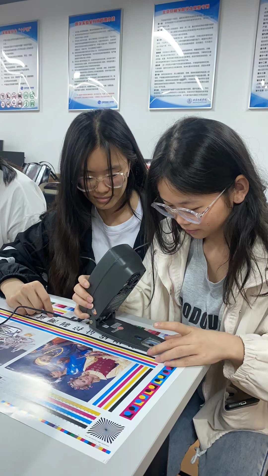 学生进行印刷品质量检测实验