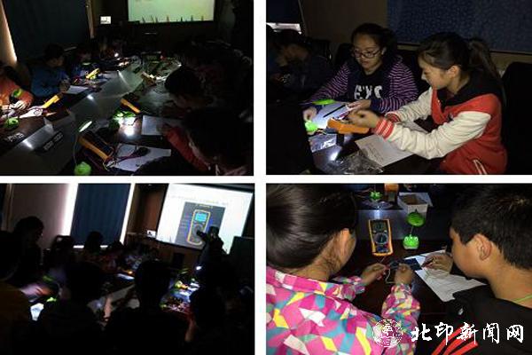 初中生参加 “导电墨水点亮LED彩灯”实践活动