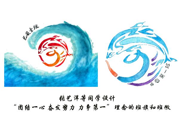 班旗的设计思想:我们来自五湖四海,汇聚在包装一班,就像一条条河流汇聚成大海,我们团结一心,共同支起我们的班级,中间的班徽犹如朝阳,也象征着我们,象征着我们的班级,我们会团结一心,奋发努力,共同建设我们的班级。
