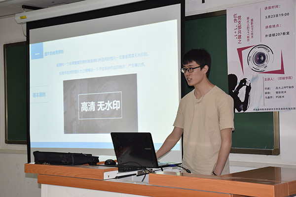 为加强高校党支部建设,强化学生党员的责任意识和服务意识,充分发挥大学生学科专业优势,创新党支部活动,5月23日晚19:00,印包学院学生党支部派出党员代表赴首都师范大学外国语学院,与其英文系学生党支部开展共建活动,为英文系同学讲解了摄影技巧、PPT制作、PS修图等知识。