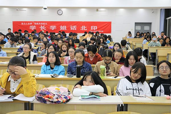 10月17日晚7点,印包学院"助力人生梦 扬帆共起航"之学长学姐话北印系列活动第7讲于E楼三阶成功举办。本期活动邀请到的是包装工程09级(13级材料科学与工程研究生)校友冯梦珂。她现就职于北京科印传媒文化股份有限公司,她以自己学习、工作的经历给17级新生分享了对印刷、包装专业的理解与看法。此次活动由印包学院17级学生辅导员牛宣岩老师主持。