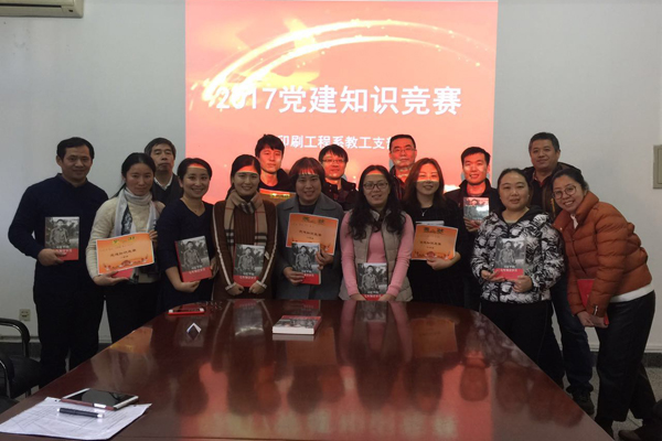 为进一步推进党员教师学习十九大精神,增强党员教师对党建知识的学习热情,更好贯彻落实“两学一做”的学习要求,增强党员理论水平和党性修养,2017年12月6日,印包学院印刷工程系教工党支部党建知识竞赛在印包学院小会议室举行。