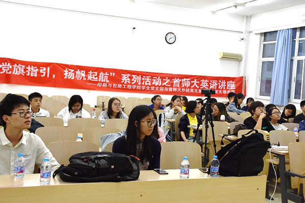 5月21日晚,印包学院学生党支部与首都师范大学外国语学院英文系本科生党支部在A楼208联合举办了以"助力人生梦,扬帆共启航"为主题的英语学习辅导讲座,首都师大的4位党员同学围绕英语四级写作和听力进行了讲解,印包学院未通过四级考试的部分同学加了本次讲座。