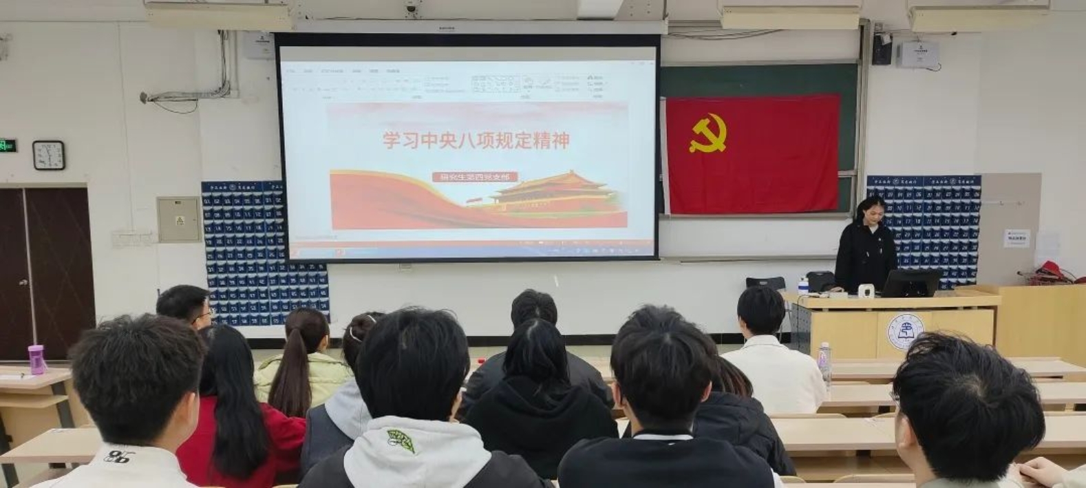 各学生党支部书记围绕中央八项规定的历史渊源、出台过程,结合具体案例深入解读中央八项规定精神的实质,强调学生党员要坚定理想信念,不断筑牢思想防线、纪律底线,时刻保持高度警醒,做到心中有戒、行有所止,为推进中国式现代化贡献智慧和力量。