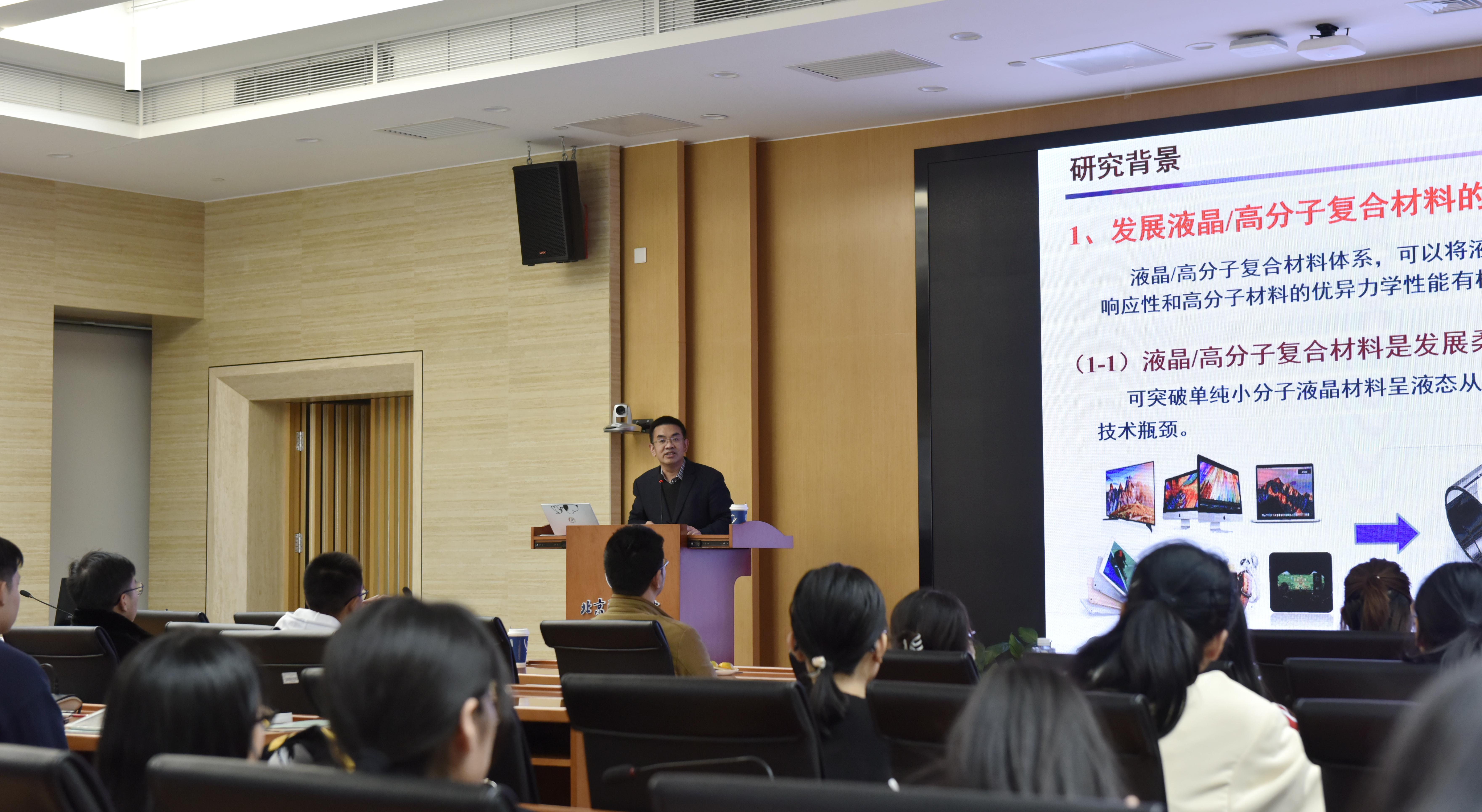 杨槐从高分子分散和高分子稳定液晶共存体系的材料设计、制备和应用等方面,用通俗易懂的实例将大家引入高分子的世界。在高分子材料应用方面,杨槐着重介绍了温控电控调光膜,并向师生展示了此种材料在防窥膜、智能建筑门窗中的应用,让同学们了解到高分子材料在日常生活中的不可或缺性。