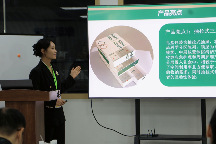 全国化妆品大赛总决赛《芙芙抽屉式祛痘礼盒包装宣传设计》答辩现场
