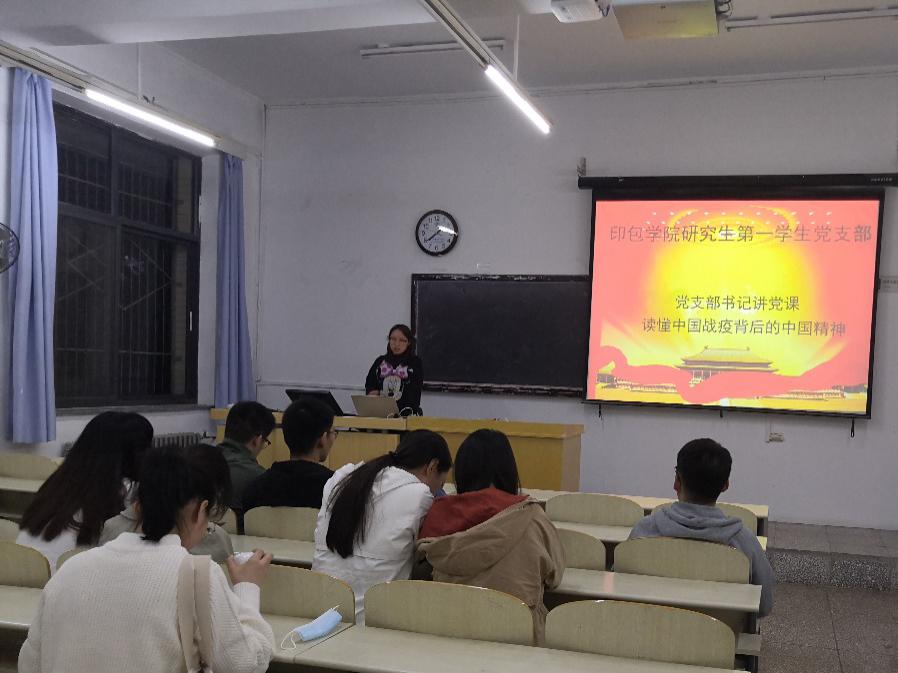 10月10日,研究生第一学生党支部书记刘洋组织开展“读懂中国战役背后的中国精神”为主题的讲党课活动,出席人员有学生党员,发展对象和积极分子。党课紧紧围绕从千万逆行者星夜赴战场到迅速建成的医院;从建立严密的疫情防控一线体系到为各国捐助医疗物资。无不体现中国人民履职尽责、冲锋在前的奉献精神,众志成城、同舟共济的团结精神,自强不息、愈挫愈勇的奋斗精神,构建人类命运共同体的担当精神,深刻诠释了"中国精神"的实质和内涵。