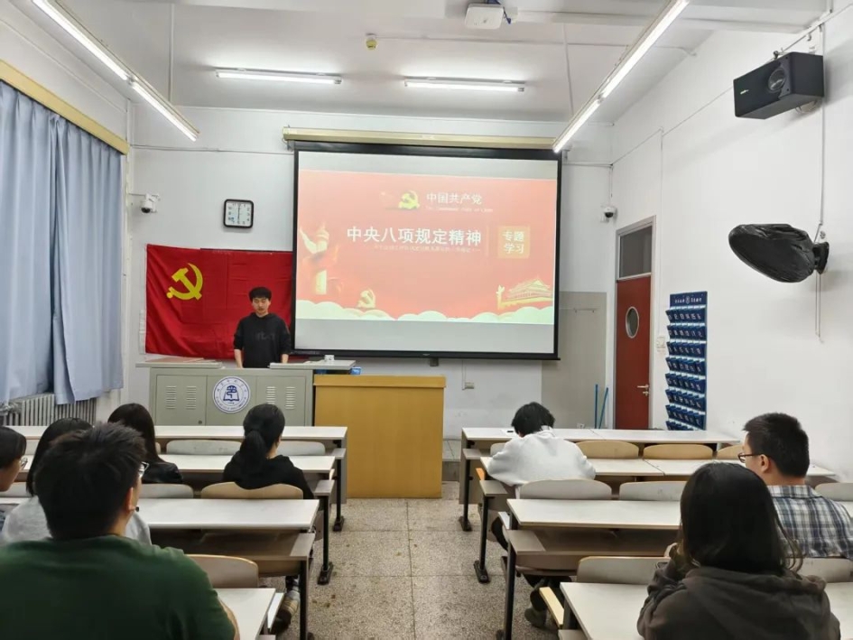 各学生党支部书记围绕中央八项规定的历史渊源、出台过程,结合具体案例深入解读中央八项规定精神的实质,强调学生党员要坚定理想信念,不断筑牢思想防线、纪律底线,时刻保持高度警醒,做到心中有戒、行有所止,为推进中国式现代化贡献智慧和力量。