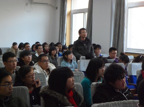 期间,他还发表了自己对考研的看法。之后,他又结合自身的经历谈到大学应该做什么。他鼓励同学们要与平常心来面对学习与工作,并且要对学习与工作充满热情,那样我们在做任何事情时都会干劲十足,信心倍增。随后,赵先生与大家分享了他就业之后的一些心得与体会。他告诉在座的学生干部,学校与社会大有不同,涉足于社会后的我们都将面临被社会化,其间会有不易与艰辛,但是他表示这些都是必然存在的,只要我们利用好大学四年的美好时光,加倍努力为未来打下坚实的基础。