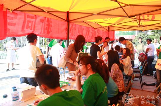 图为印包接待处的学生干部为新生办理手续