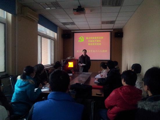 15日上午,在E楼重点实验室会议室印刷与包装工程学院书记李路海讲话,强调了深入贯彻学习十八大精神的重要性,重点讲解了十八大选举的新一届中央领导人立党为公执政为民做出的表率,要求作为一名党员更要保持先进性,无论在工作、学习以及生活中要起到模范带头作用。